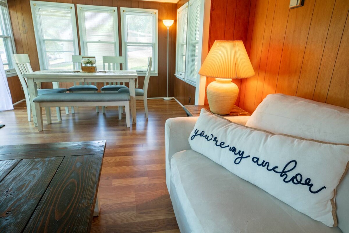 Relax with the whole family at Justin's Timberlake Retreat. Located in a quiet community near the 81mm of Lake of the Ozarks with its own private boat dock and 2 local boat ramps to launch from. 2 bedrooms 1 bath with an extra family room and beautiful screened in porch with plenty of seating and gas fire pit. Hop in your boat and take a short ride to The Oar House, Shooters 81 or Bucknaked for some dinner and family entertainment! Downtown Warsaw is a quick 10 min drive away.