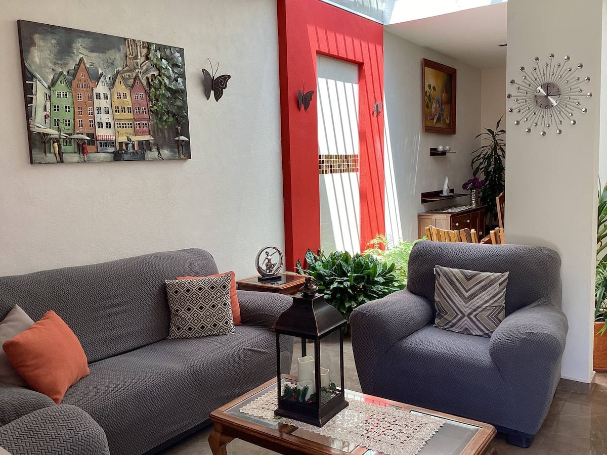 Lindo apartamento central na cidade de Colima. Apenas 4 quarteirões da catedral. Um espaço muito acolhedor para desfrutar com a família ou com o seu parceiro. Todas as comodidades como se estivesse em sua casa. Não temos estacionamento privativo, mas você pode estacionar exatamente do lado de fora da propriedade na rua ou, se preferir, devido à sua proximidade com o centro, há estacionamentos e pensões a bons preços perto da área.