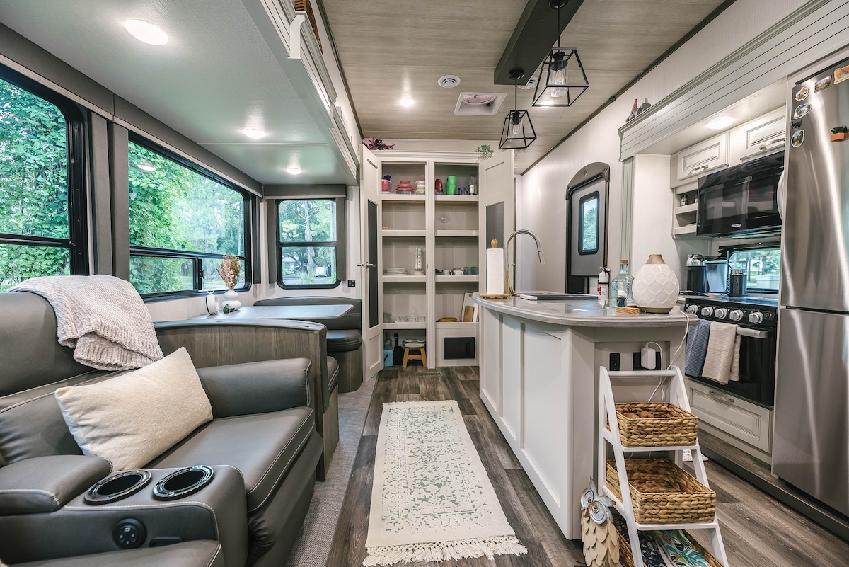 Confortável e totalmente equipado 2014 Laredo 5th-Wheel RV oferecendo uma estadia privada, limpa e prática. Ideal para viajantes que gostam de viver em um trailer com confortos reais de casa, incluindo um banheiro privativo, cozinha completa e uma máquina de lavar roupa na unidade. Uma alternativa tranquila e acessível aos hotéis, com fácil acesso às praias e lojas de Fort Myers.
