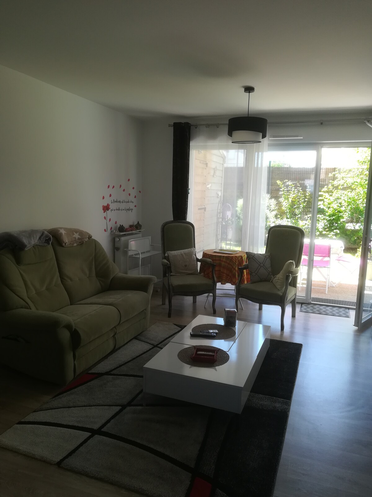 No coração histórico de Caen, ao lado da prefeitura e da Abadia dos Homens, apartamento antigo totalmente reformado de 65 m², piso térreo luminoso com vista para o pátio e jardim, composto por uma cozinha aberta totalmente equipada, sala de estar com sofá-cama, quarto com cama de casal, banheiro com chuveiro e banheira. Um terraço virado para o sul com vista para um jardim fechado e ensolarado, estacionamento possível no pátio. Televisão, Wi-Fi, tábua e ferro de passar, secador de cabelo, toalhas e roupa de cama fornecidas.