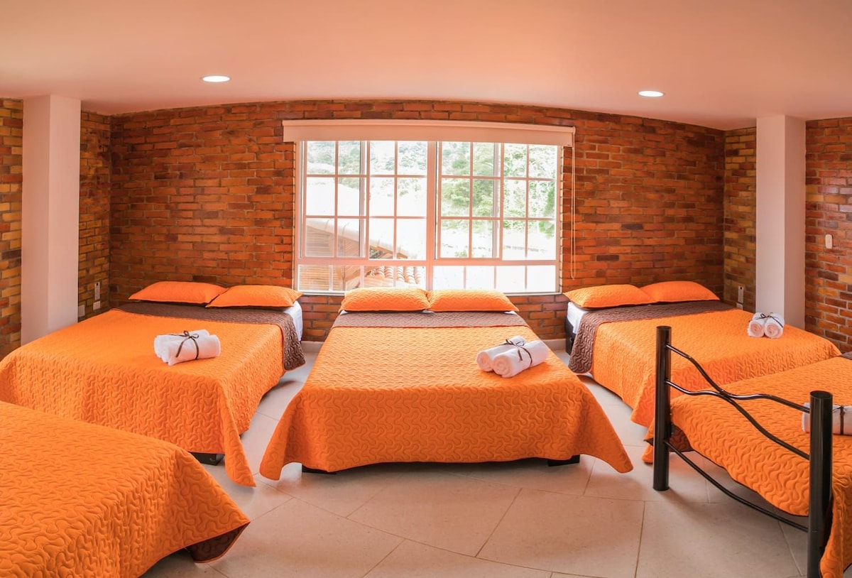 Cabine de um quarto equipada com 2 camas de casal e dois sofás-cama perfeitos para uma pequena família ou um casal que quer desfrutar de uma pausa romântica com uma bela vista da Barragem de Guatapé. WiFi gratuito e TV a cabo na cabine. Ele está localizado em um complexo fechado com um restaurante com vista para a barragem (custo adicional), centro de água com serviços para atividades aquáticas (custo adicional), solário e espreguiçadeiras gratuitamente na praia artificial.