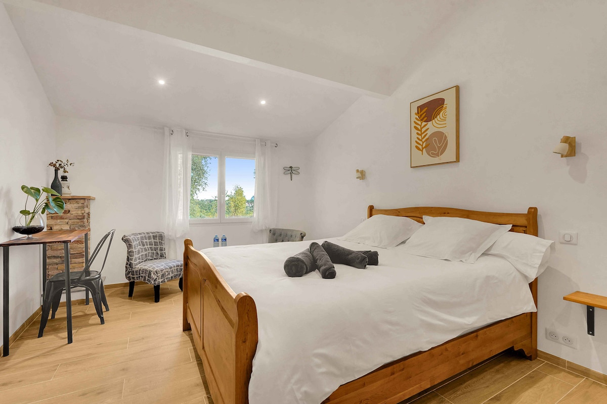 Café da manhã ilimitado. Eu preparo minhas geleias, excelente. Jantar sob demanda disponível. Atmosfera amigável, familiar, sem protocolo no Domi como em casa. Azulejos brilhantes e paredes brancas, quarto espaçoso e agradável, cama epéda muito confortável e lençol e edredom perfumados de cetim de luxo, armários grandes. A área de estar e jantar ensolarada tem vista para o jardim com palmeiras. Eu sou um fumante, mas não é permitido fumar no quarto. É IMPORTANTE LER O RESTO DO ANÚNCIO.