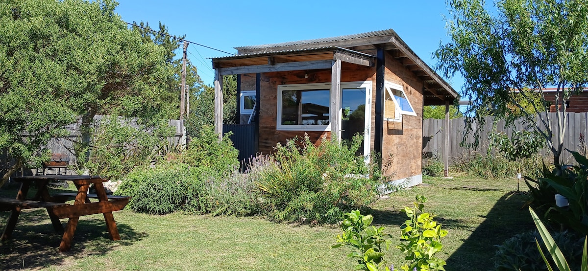 Vivi el campo y el mar a 400 metros de la playa Cruz del Sur. Disfrutá de un entorno natural y relajante. Se trata de una casa modular que construimos para disfrutar en familia y que decidimos alquilar en épocas de año en las que no la usamos. Posee un dormitorio con cama matrimonial que puede transformarse en 2 singles, una cocina totalmente equipada y un living con sillones y salamandra para la cual dejamos leña disponible. En el dormitorio hay una estufa. Cuenta con servicio de wifi.