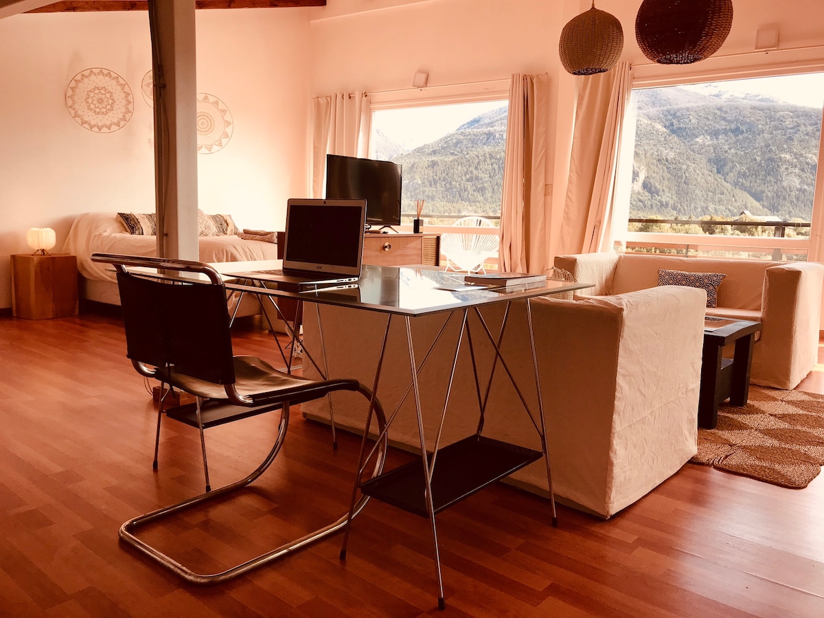 Apartamento de 50 m² com vista deslumbrante para o lago e a Ilha Victoria na área de Llao Llao. Tem uma pequena sala de estar, cozinha completa com forno e micro-ondas, cama king size que dá para uma varanda terraço. Banheiro completo com banheira Acesso próprio à margem do lago Serviços Wi-fi Varanda terraço com espreguiçadeiras Roupa de cama e toalhas são trocados a cada 5 dias Secador de cabelo Estacionamento privativo Exclusivo para casais Sem café da manhã Não há TV A limpeza final custa US$ 20