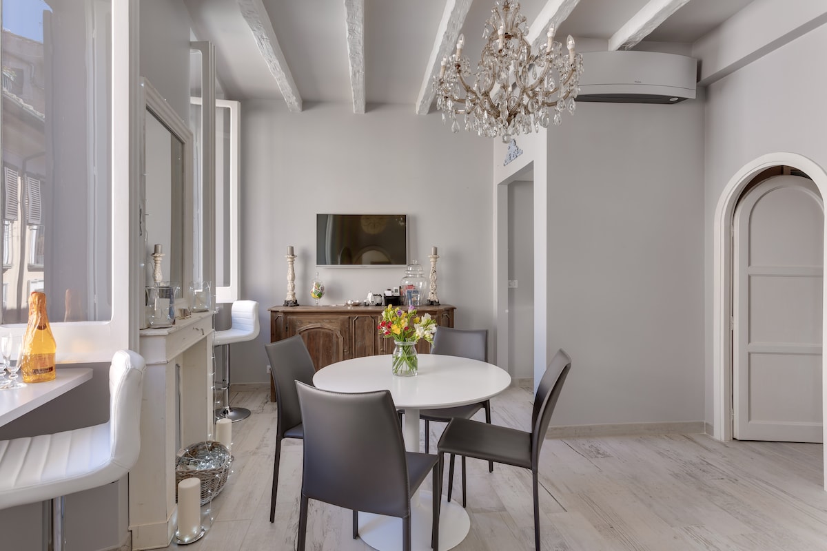 No último andar de um antigo Palazzo no coração da Roma Antiga, o luxo Atticus é ideal para casais, solteiros ou amigos. Este elegante estúdio excede todas as comodidades que você esperaria de um hotel 5 estrelas: recebe você com Prosecco, itens armazenados de café da manhã e produtos de higiene pessoal Salvatore Ferragamo. Conforto, elegância e privacidade para uma estadia incrível a poucos minutos a pé do Coliseu e do Fórum de Trajano. Romance também em uma taça de vinho na varanda com vista para o centro da cidade e o Fórum Romano ao lado.