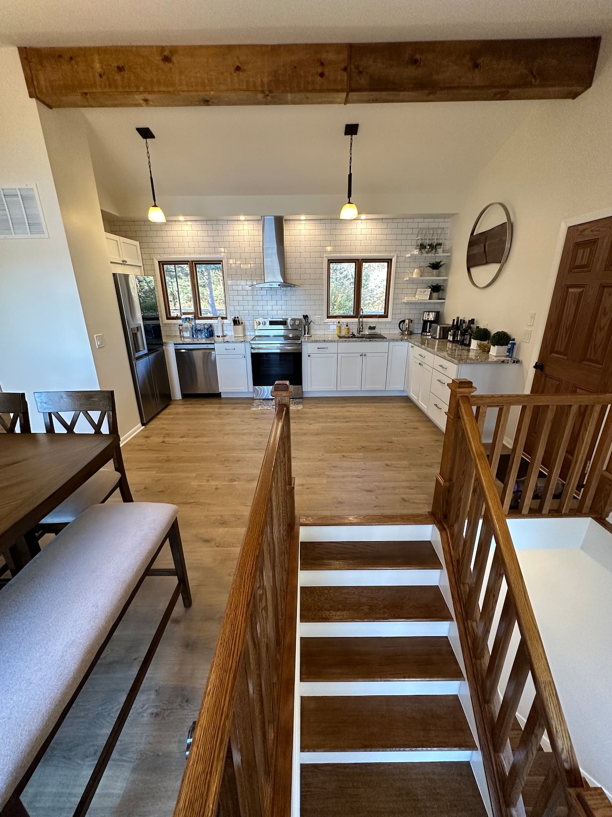 Afaste-se das rotinas diárias e refresque-se pelo rio Wisconsin em seu retiro privado e tranquilo localizado perto do Devil's Lake, Cascade Ski & Devil's Head Ski/Golf Resorts & WI Dells. Perfeito para famílias com 9 camas, banheira de hidromassagem para 8 pessoas, 6 caiaques (maio-outubro), pingue-pongue, pebolim, dardos e jogos ao ar livre. O design moderno e espaçoso é preenchido com luz natural, confortos de luxo e novos móveis com cozinha de chef, Weber Grill, lareira e fogão a solo. Pergunte-nos sobre as Ilhas do Rio nas proximidades ou viagens de um dia para esquiar/caminhar.