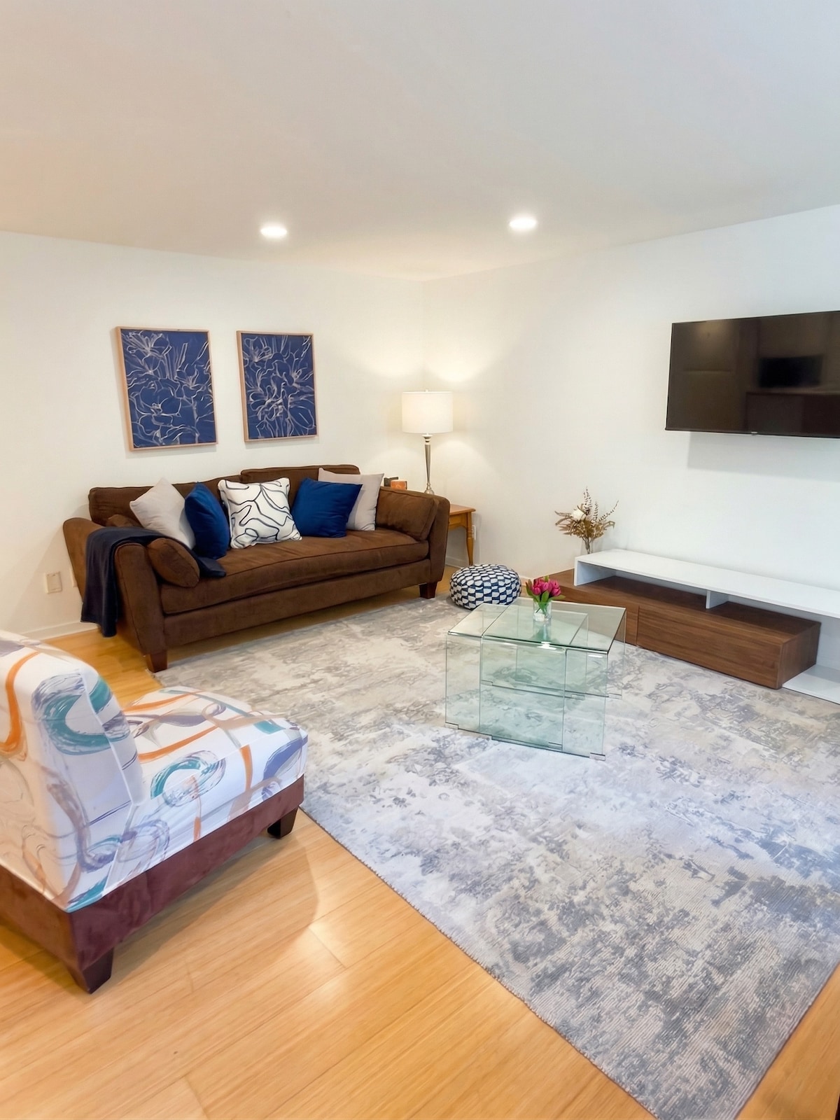 Esqueça de suas preocupações neste lugar espaçoso e tranquilo. Belas vistas da cidade e do mar em uma propriedade grande, arborizada e lindamente paisagística. Dois quartos com camas tamanho queen, ambos com colchões de espuma de memória. Sala de estar com TV de 70", mesa de escritório com computador e impressora conectados à Internet, Wi-Fi em todo o local. Ar condicionado e aquecimento controlados separadamente. Banheiro completo e lavanderia. Cozinha bem equipada e área de refeições. Grande deck coberto. Estacionamento fora da rua. Entrada privativa separada.