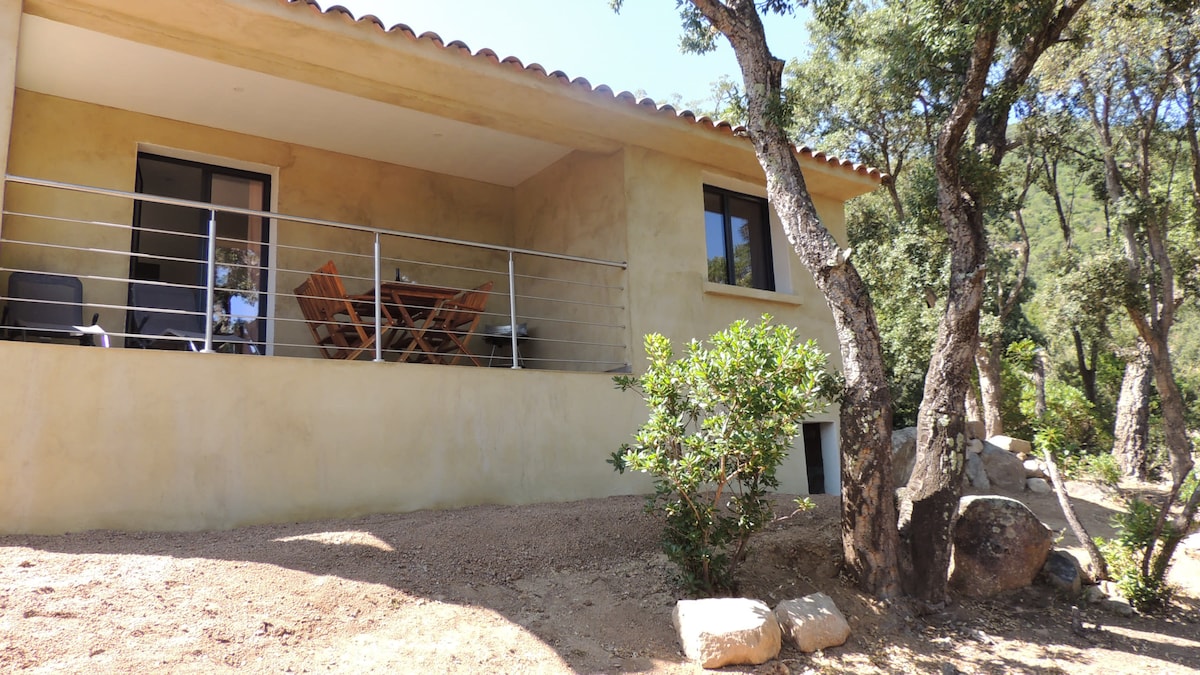 Bem-vindo à nossa casa. Nossa vila de arquiteto, recém-construída, fica a 700 metros da bela praia de Pinarellu. Você pode chegar lá a pé por uma pequena estrada de terra que atravessa o matagal. A casa é espaçosa, bem iluminada, fácil de viver, você poderá desfrutar do pôr do sol tomando um aperitivo no belo terraço ensolarado com vista para a montanha. Pinarellu é adequado para esportes aquáticos. Você pode alugar barcos, pranchas de Wingfoil, Kitesurf, e-foil, catamarãs...