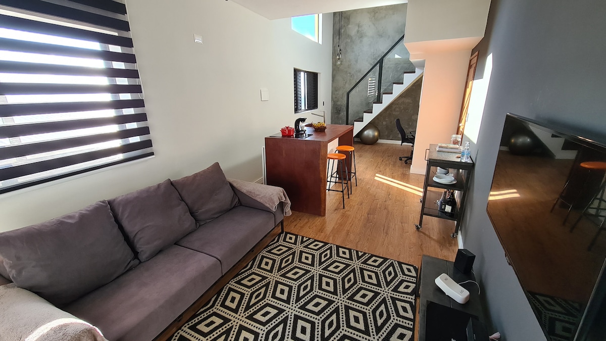 Descanse e relaxe neste espaço elegante perto da cachoeira Véu de Noiva com vistas panorâmicas. Este lindo chalé é extremamente confortável e bem equipado para sua estadia em São Thomé das Letras. A sala principal tem uma cama, TV com ligação WIFI e uma mesa para jantares românticos. A cozinha está equipada com um cooktop a gás, micro-ondas, cafeteira e utensílios para cozinhar. O banheiro é amplo com água quente de aquecedor solar.