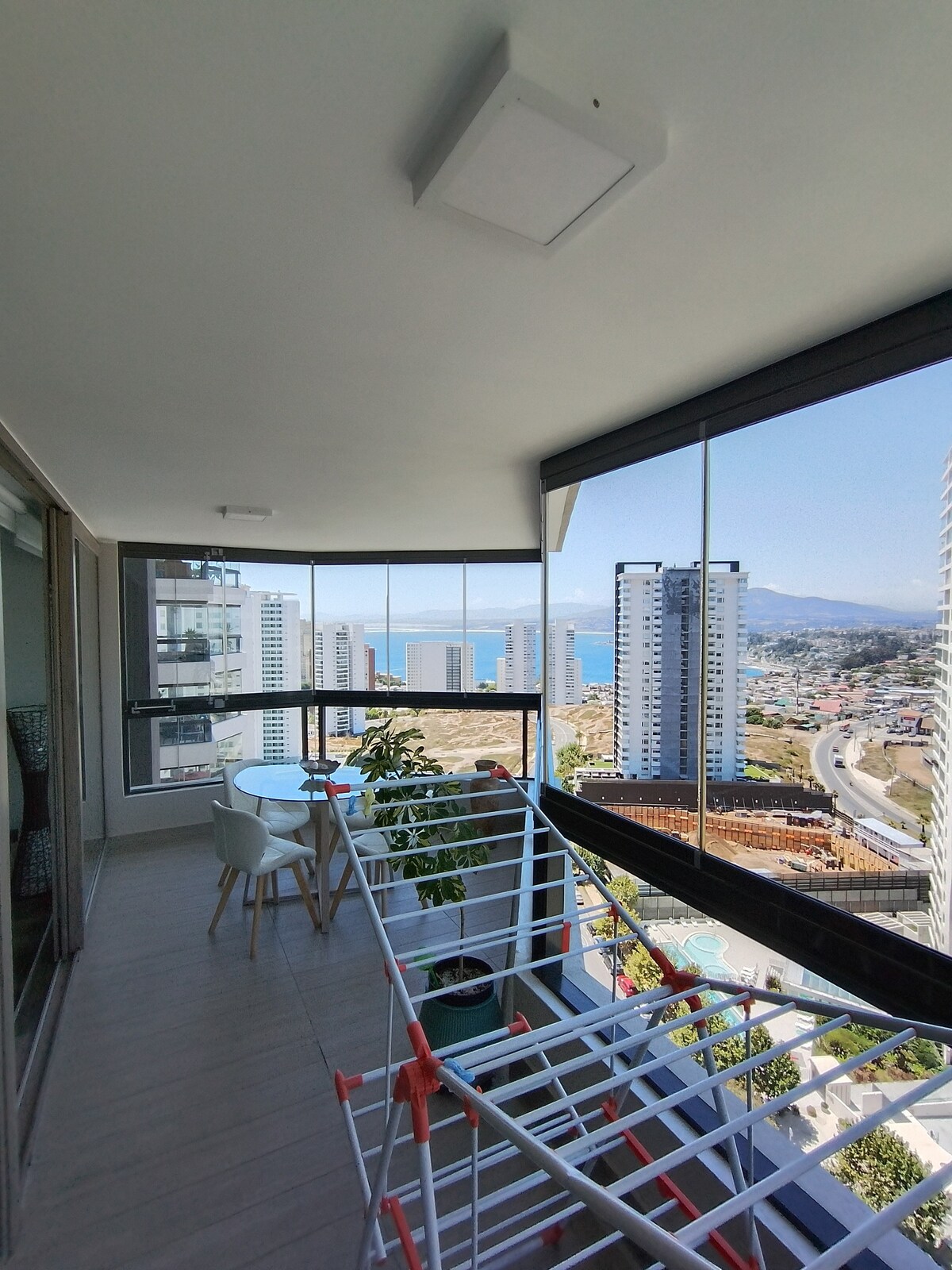 Apartamento novinho em folha em uma área exclusiva e central de Concón, a poucos minutos de praias, dunas, lojas e restaurantes. Familiar e seguro para crianças e bebês. Estacionamento privativo incluído. O edifício oferece piscina externa, piscina interna aquecida e academia. Ideal para relaxar e desconectar, com vista para o parque, dunas e oceano. Redes de segurança e um terraço fechado com vidro dobrável proporcionam segurança extra para as crianças.