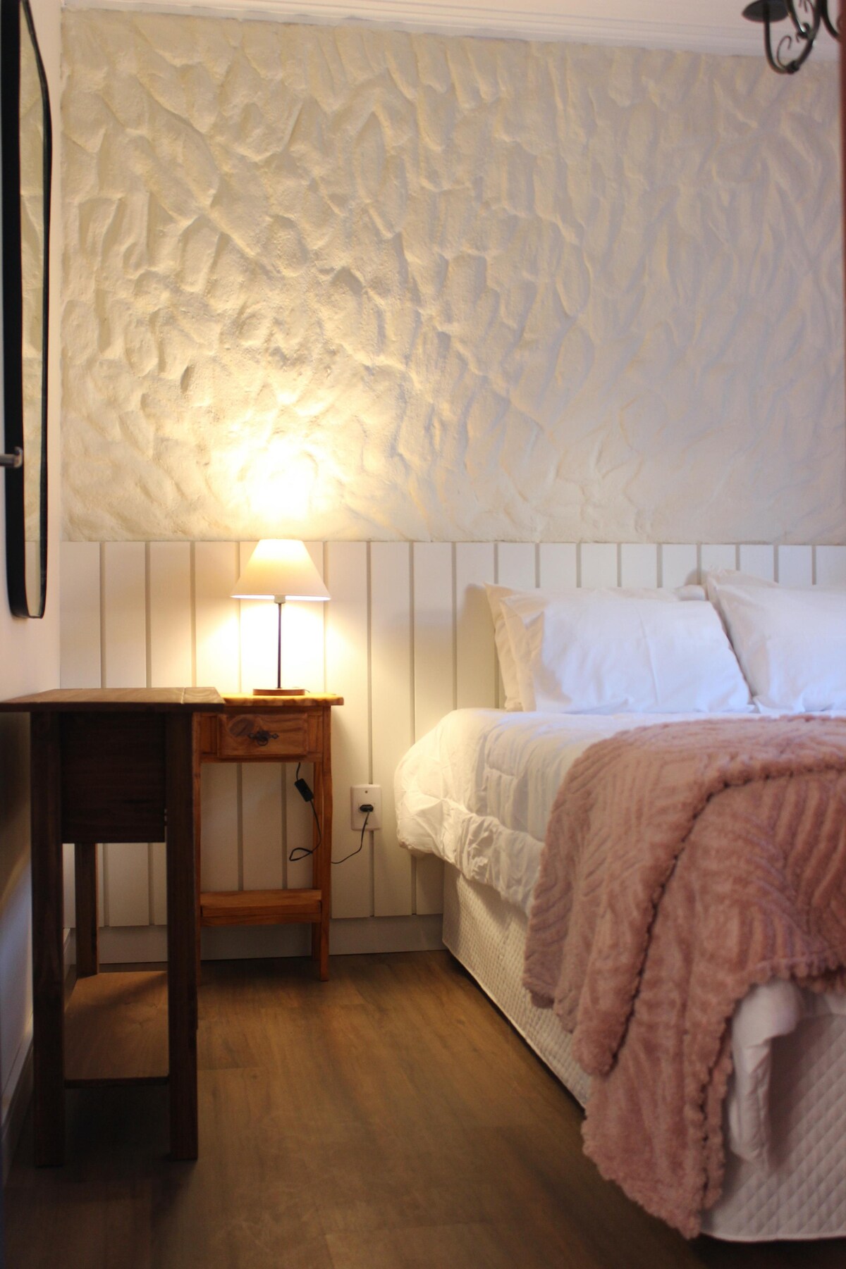 Suíte localizada na comunidade da chapada subdistrito de Lavras Novas, dentro do terreno da anfitriã Maria, está a 2 km de uma linda cachoeira. É um lugar bem tranquilo e agradável, ambiente familiar, para pessoas que querem disfrutar de um ambiente rustico confortável. A Suíte tem 50m² , dispõe de uma banheira de hidromassagem, TV, cama Queen Size, sofá cama, micro-ondas, uma mesa e frigobar. O café da manhã é servido na cozinha da anfitriã Maria e está incluído no valor da diária.