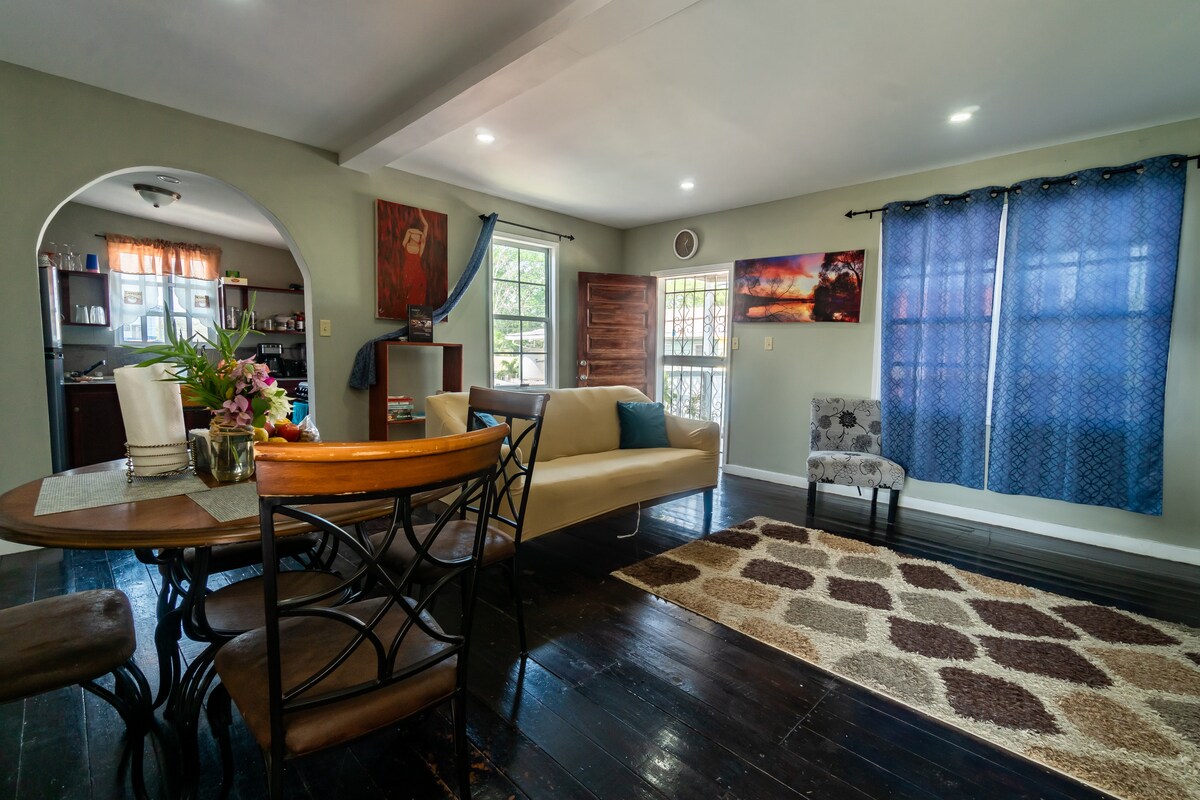 Recently remodeled Belizean Colonial Style home. Clean and well lighted spaces. Located about 5 minutes walking distance from commercial downtown area. The Moroton area of San Ignacio is a mix between commercial and residential area. We are a very progressive bunch, and welcoming to everyone. We accept all guests. The home sits beside St. Andrews Anglican School and is an extremely safe area, excellent for a family or couple who wants to walk around town.