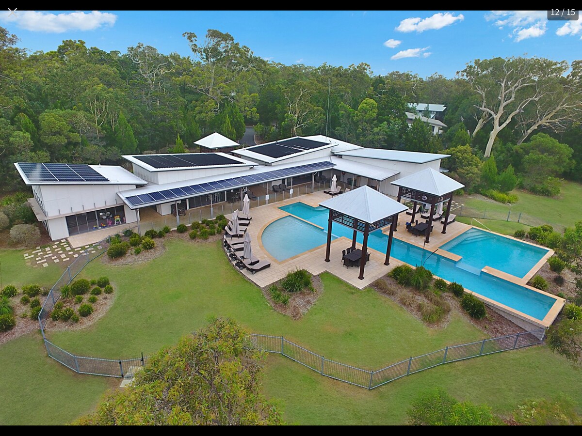 Seu próprio "trecho privado de rio selvagem a apenas 15 minutos da Hastings St, incluindo caiaques. 4 ac de arbustos, parque estadual fronteiriço. Deck nas árvores, pesca e caiaque do tipo selvagem (fornecido) no jardim. As crianças adoram, os pais também. Sente-se ao redor de uma fogueira à beira do rio cozinhando sob as estrelas e ouvindo o respingo da tainha. Talvez as crianças tenham uma linha no rio (equipamento de pesca fornecido). Noosa tão perto. Estúdio moderno de 3 quartos separado e iluminado para duas pessoas no riacho também disponível.