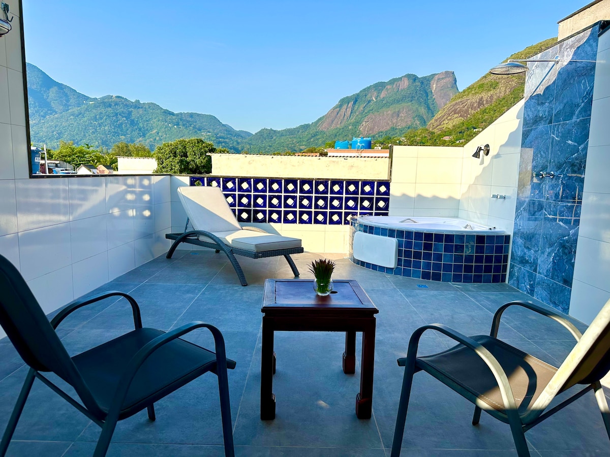 Terraço com jacuzzi e vista para o Cristo Redentor