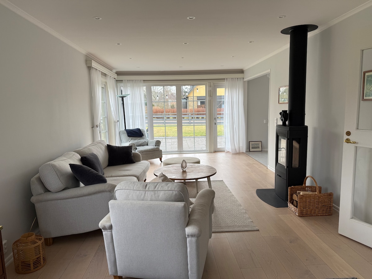 Casa muito confortável em rua tranquila com lareira e sala de estar aconchegante, quintal espaçoso. Muito perto da Arena de Cavalos Falsterbo, a 1 km das praias, a 600 m da paragem de autocarro, a 1 km do centro da cidade de Falsterbo e lojas, a 1,5 km do centro da cidade de Skanör. A marina de Skanör fica a apenas 3 km de distância, com todos os seus restaurantes e cafés. Naturum em Strandbaden fica a apenas 1 km da casa e é especializado em flora e fauna nesta parte da Suécia, com foco em aves migratórias. Wi-Fi gratuito. Móveis de pátio.