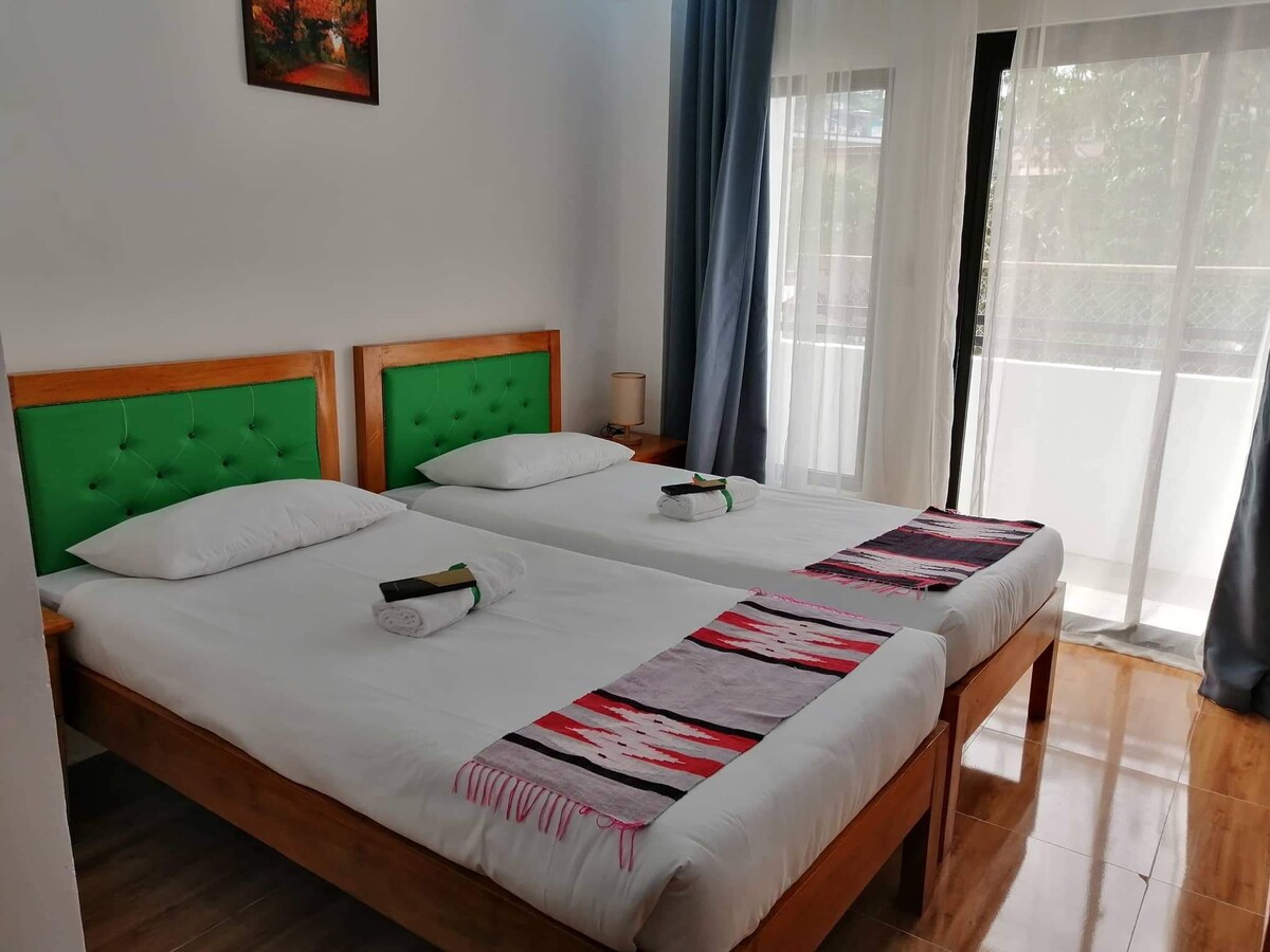 Quintuple Room (3-5 pax) - 2 double-sized beds & 1 single bed - Curtain linings on windows for privacy ( new!) - Free Wifi & parking - Private bathroom, towels & toiletries provided - Improved Shower Heater ( new! ) -Cable TV -Spacious & well-ventilated - located at the reception area level, best choice for guests with senior citizens & PWDs. -0.5 KM from Burnham Park -1.7 KM from Session Rd -2 KM from SM -Only 1 small pet is allowed w/ additional charge, pet should be in diapers at all times