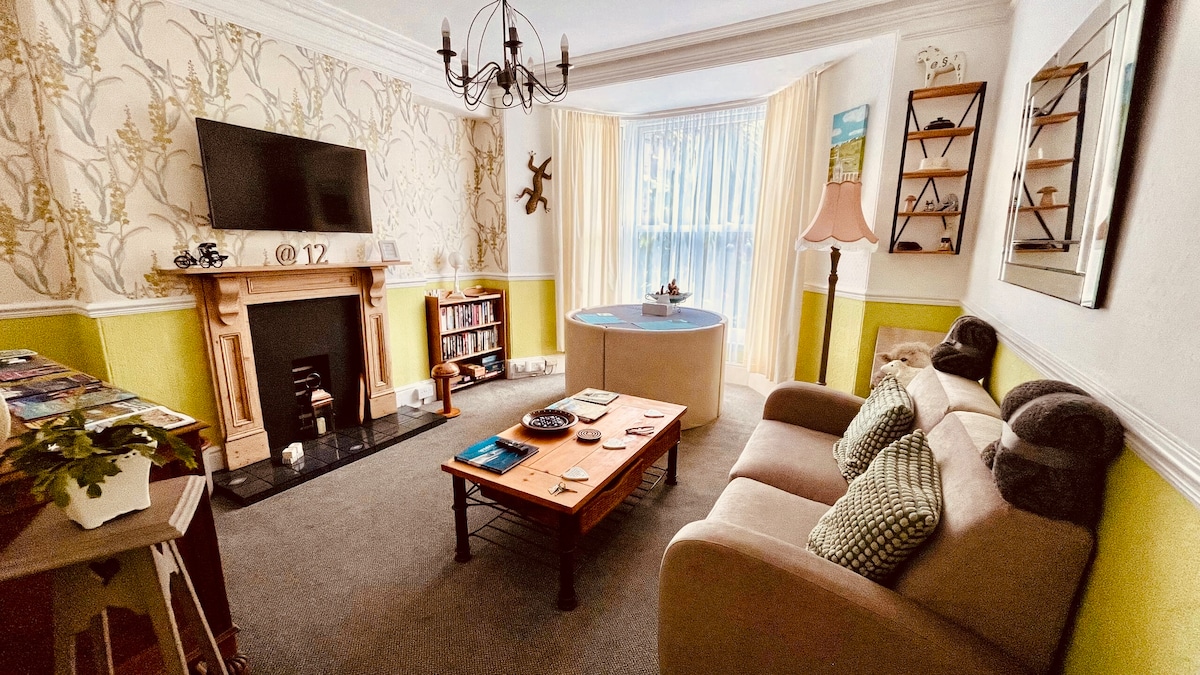 A apenas 100 metros da areia, o Waves é um apartamento espaçoso e cheio de luz, com tetos abobadados e interiores calmos da costa escandinava. Com estacionamento privativo e flexibilidade para animais de estimação, é o refúgio perfeito para pausas de surfe, escapadas românticas ou férias à beira-mar sem esforço. Saia para surfar, nadar ou passear pelo icônico South West Coast Path — depois volte para restaurantes e bares descontraídos à beira-mar, todos emoldurados pelos espetaculares pores do sol do oceano de Watergate Bay.