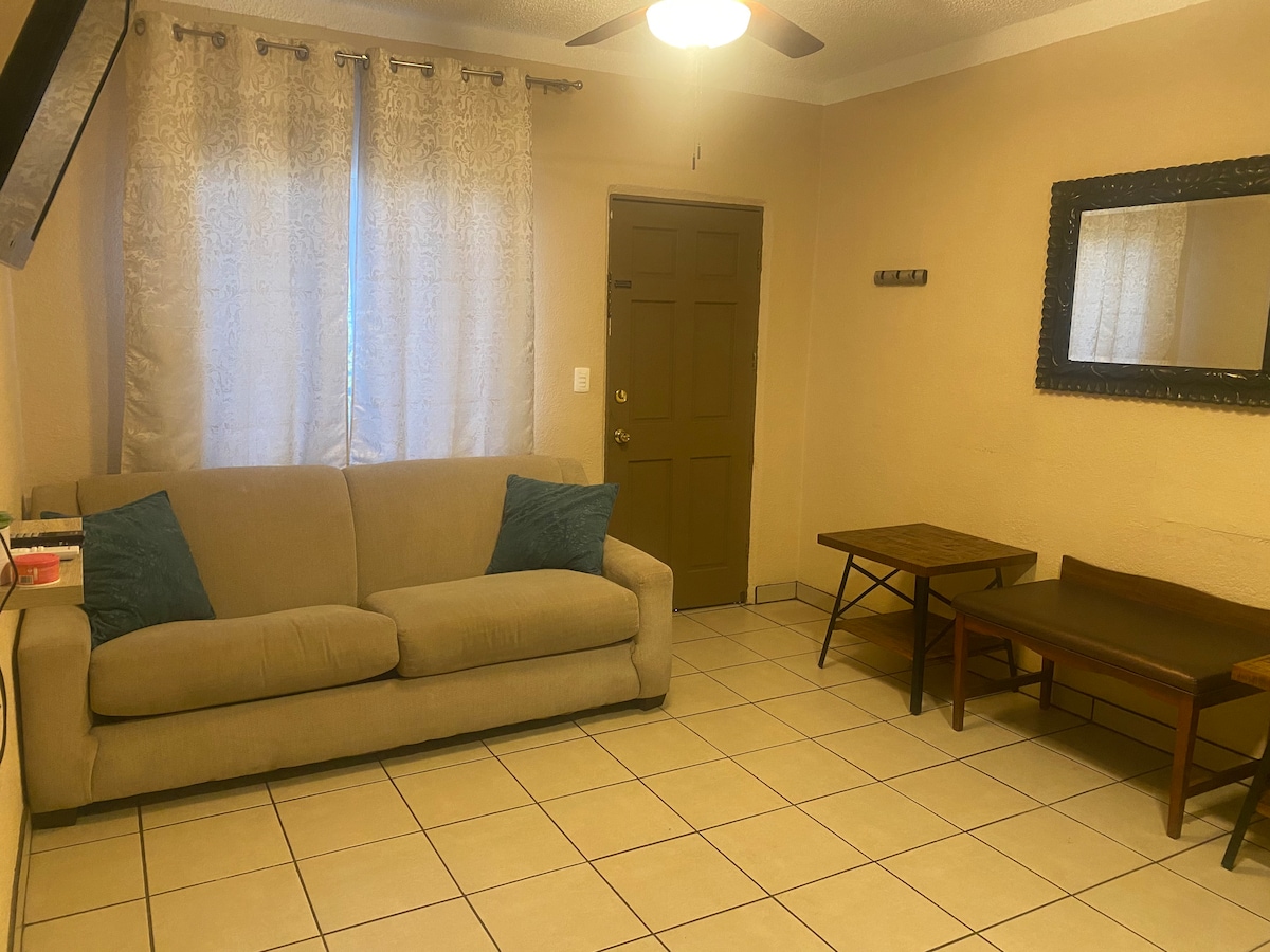 Relájate en este espacio tan tranquilo y elegante. Con todos los servicios privados como cocina, sala, recamara, baño, lavadora, (secadora compartida) entrada privada, ya instalados pueden llegar a cualquier horario, se aceptan visitas, está pequeño pero muy muy cómodo y limpio, a 15 minutos del aeropuerto y 20 a las garitas a USA, a 5 minutos de plazas comerciales, cómo Macroplaza, Monarca, Museo del Trompo, Parque Morelos y zona de restaurantes. Ambiente familiar, No sé renta como motel☺️.