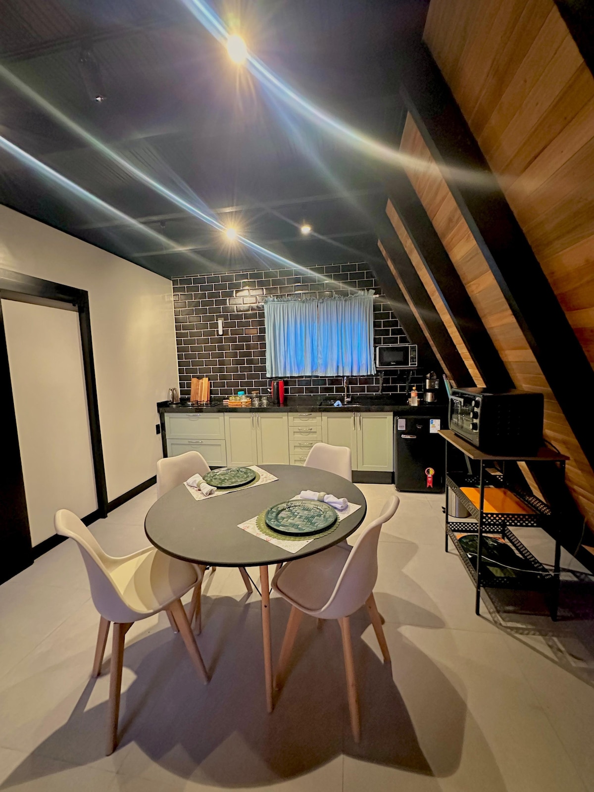 A cabana @oranchodacolina conta com: Cozinha totalmente equipada, micro-ondas, forno elétrico, liquidificador, torradeira e air fryer. Oferecemos tb itens essenciais como sal, açúcar, azeite. A cama queen é super confortável com roupas de cama e banho são de primeira qualidade. Ar condicionado quente e frio, proporcionando conforto térmico em qualquer estação do ano. Banheira de imersão com sais de banho. E no banheiro, chuveiro e torneiras aquecidas a gás com uma linda vista para a natureza.