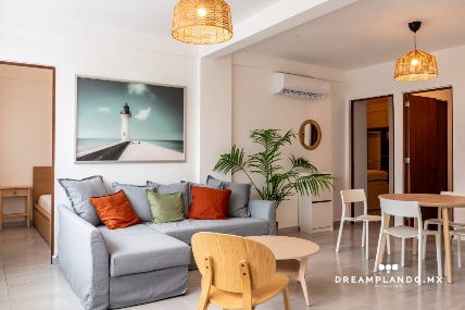 Apartamento en una inmejorable ubicación, cerca de los mejores restaurantes, plazas comerciales, a unos pasos de plaza las americas, plaza andamar, plaza sol y el centro de convenciones (WTC). Sientete como en casa en este alojamiento con estilo ideal para tu viaje de negocios o disfrutar con la familia con una amplia sala, Smartv de 65" entre otras amenidades.