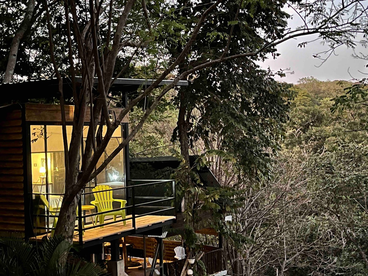 Faça parte da natureza e explore uma experiência incrível na selva a poucos minutos da praia. A área principal é um típico rancho antigo onde você pode encontrar a cozinha aberta e viver rodeado pela natureza. Basta sentar, relaxar e apreciar os sons e a vida selvagem do seu pátio. A área é repleta de pássaros como colibrî, falcões, águias pescadoras e também raposas, veados e coiotes à noite. Separado da área principal está o quarto que é um conceito moderno feito em ferro e vidro.