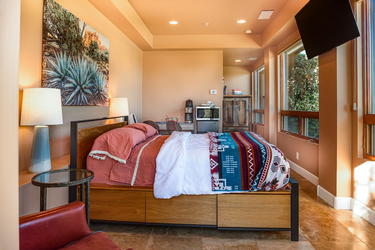 Rustic decor with a western and copper mine theme. Located in the heart of Cottonwood Arizona, this space is just five minutes from tasting rooms, restaurants, and shops in Old Town Cottonwood. 20 minutes from Sedona and it’s Red Rocks as well as the historic mining town of Jerome. Two hours from the Grand Canyon and 90 minutes from Sky Harbor Airport. More than 15 local tasting rooms, Out of Africa Wildlife park, Tuzigoot National Monument, Verde Canyon Railway, a true outdoor lovers paradise!