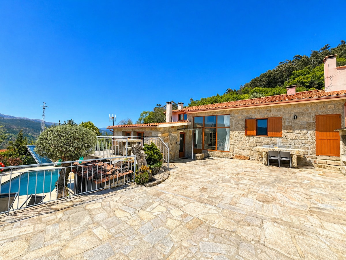Refúgio rural: vista para a piscina na natureza em Gerês