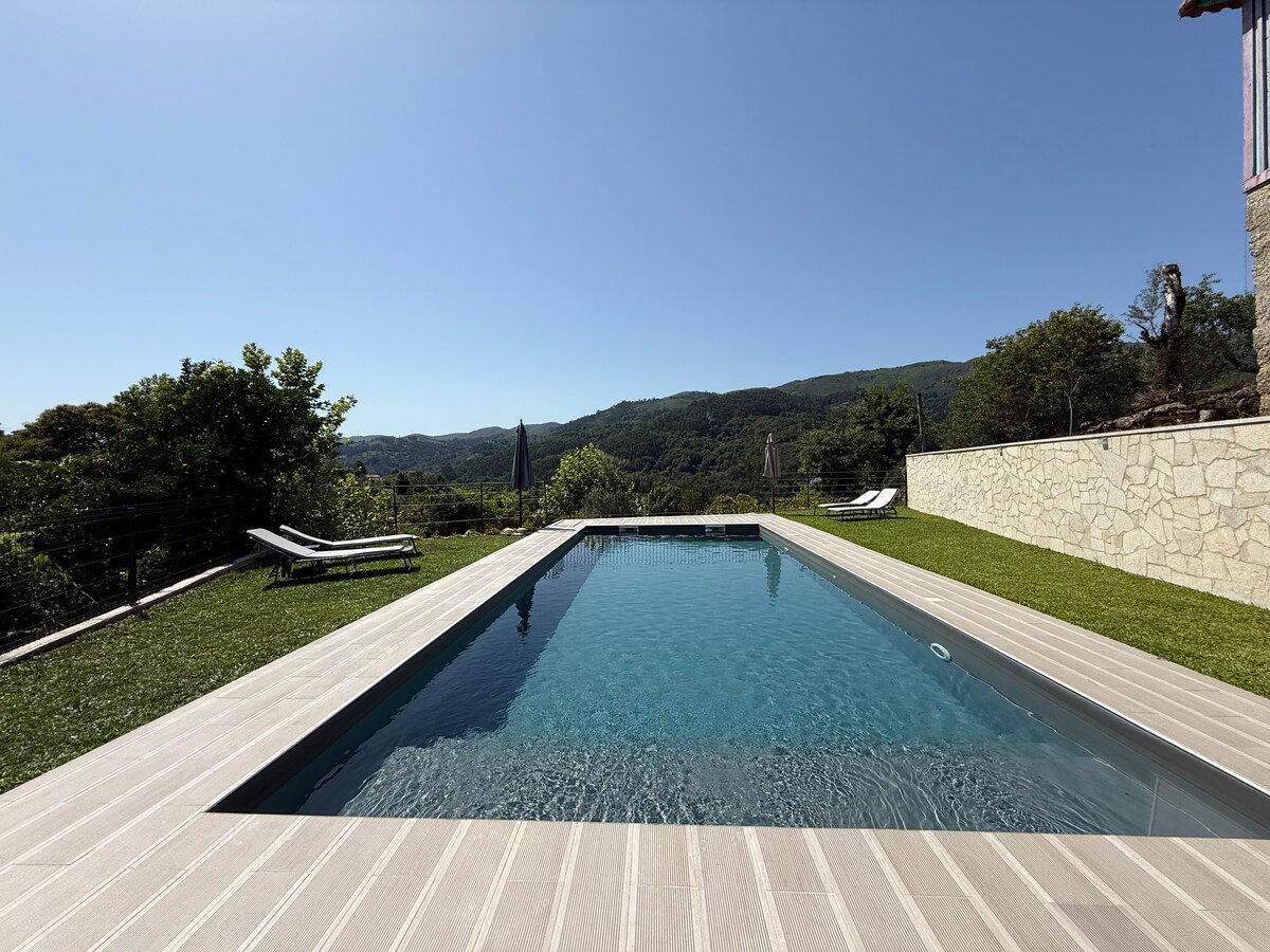 Refúgio rural: vista para a piscina na natureza em Gerês