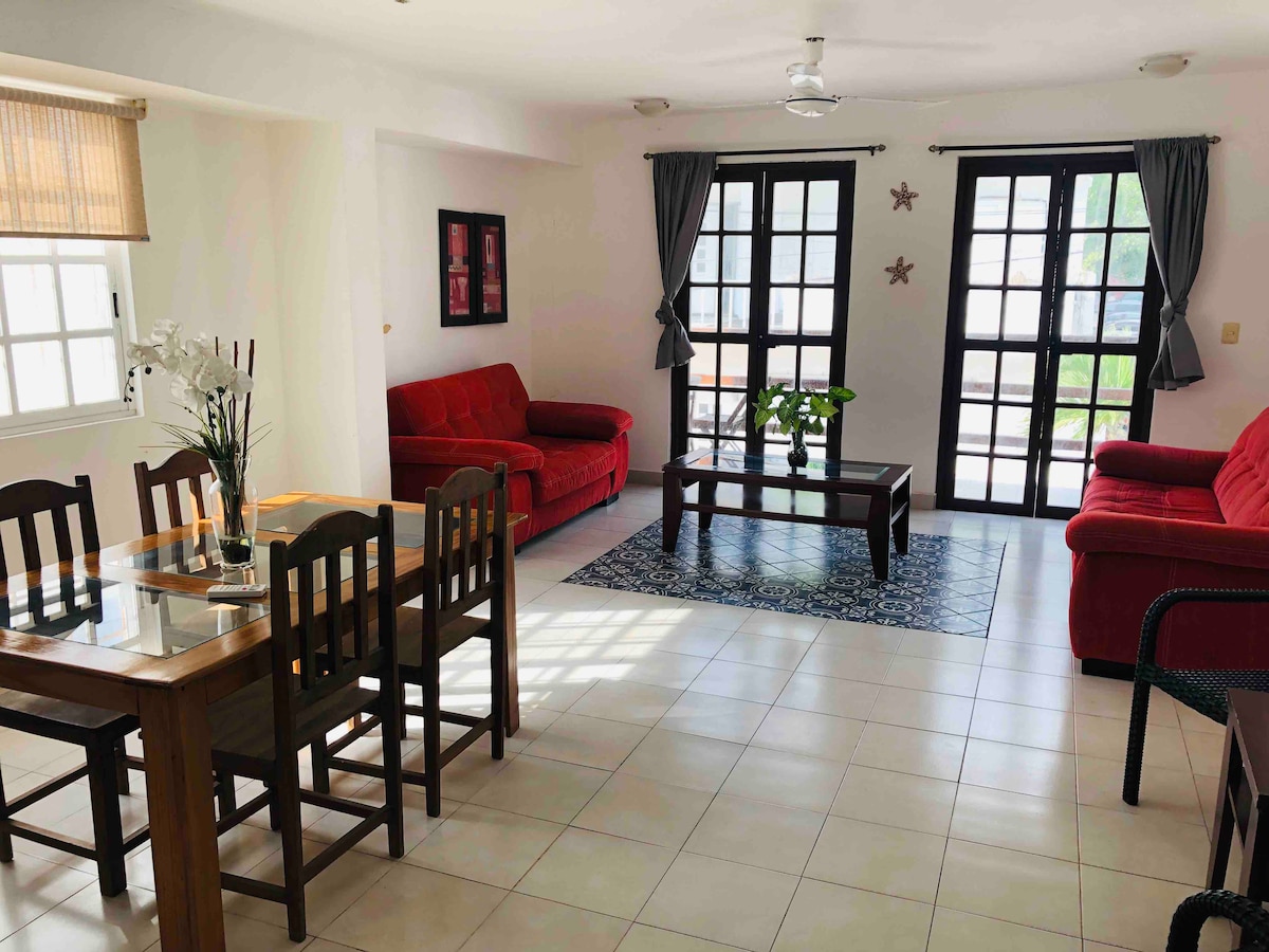 Apartamento privado a apenas 50 metros do mar e da avenida principal. Possui uma cama queen size e uma cama de casal, ar condicionado, ventilador, cozinha totalmente equipada, geladeira, redes mosquiteiras, banheiro privativo com água quente e fria (aquecida por um aquecedor solar de água) e acesso Wi-Fi gratuito. Ideal para casais, viajantes individuais ou aqueles que procuram estadias longas no coração da cidade, perto de restaurantes e vida noturna; a área tem uma atmosfera vibrante até cerca de 1h30 nos fins de semana.