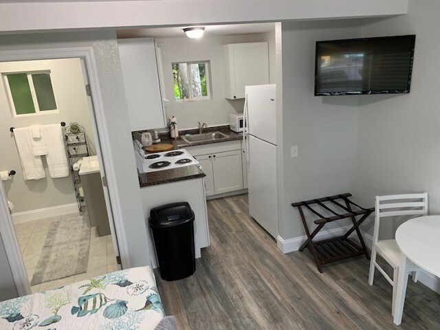 Estúdio de bloco sólido recentemente reformado localizado na Comunidade de Casas Pré-fabricadas à Beira-mar do Lago Crescent. Esta exuberante casa tropical e bairro tem uma sensação antiga da Flórida. O interior inclui novos móveis e decoração interior. Um retiro perfeito para um casal fugir ou uma única pessoa desfrutar e ainda dirigir fácil até as praias da costa leste da FL. Junte-se aos vizinhos no cais para pescar ou ter uma boa conversa na fogueira. Distância a pé de mercearia, lojas de dólar, centro da cidade e o lançamento do barco.