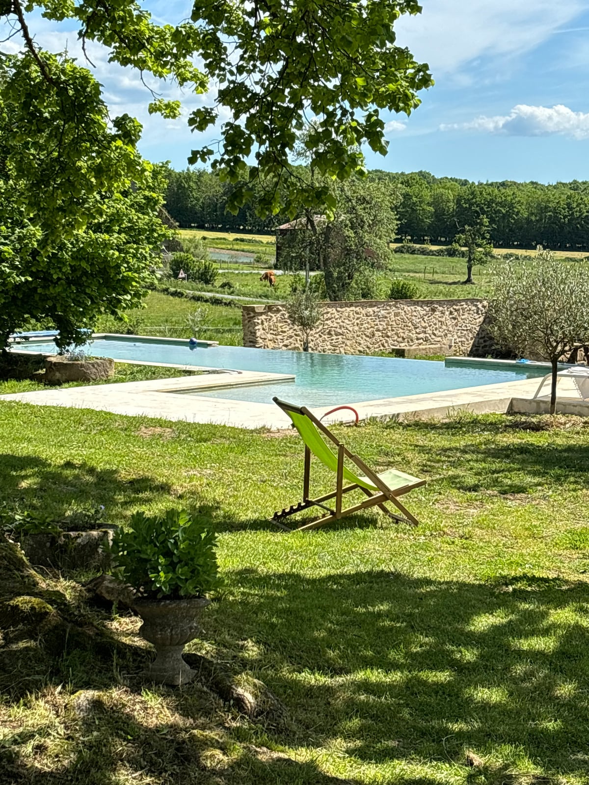 Situado a 5 minutos do Lago Helene e se você está procurando paz e tranquilidade, você não vai se decepcionar. A casa de fazenda do século XIX foi restaurada com carinho com uma mistura de decoração antiga e nova, mantendo seu charme rústico. Oferece um interior muito espaçoso e o exterior está situado dentro de seus próprios terrenos de 1,5 acre, dando-lhe espaço para desfrutar das vistas panorâmicas do campo francês, criando um ambiente muito relaxante. Você pode desfrutar do nascer do sol no convés e observar as estrelas à noite.