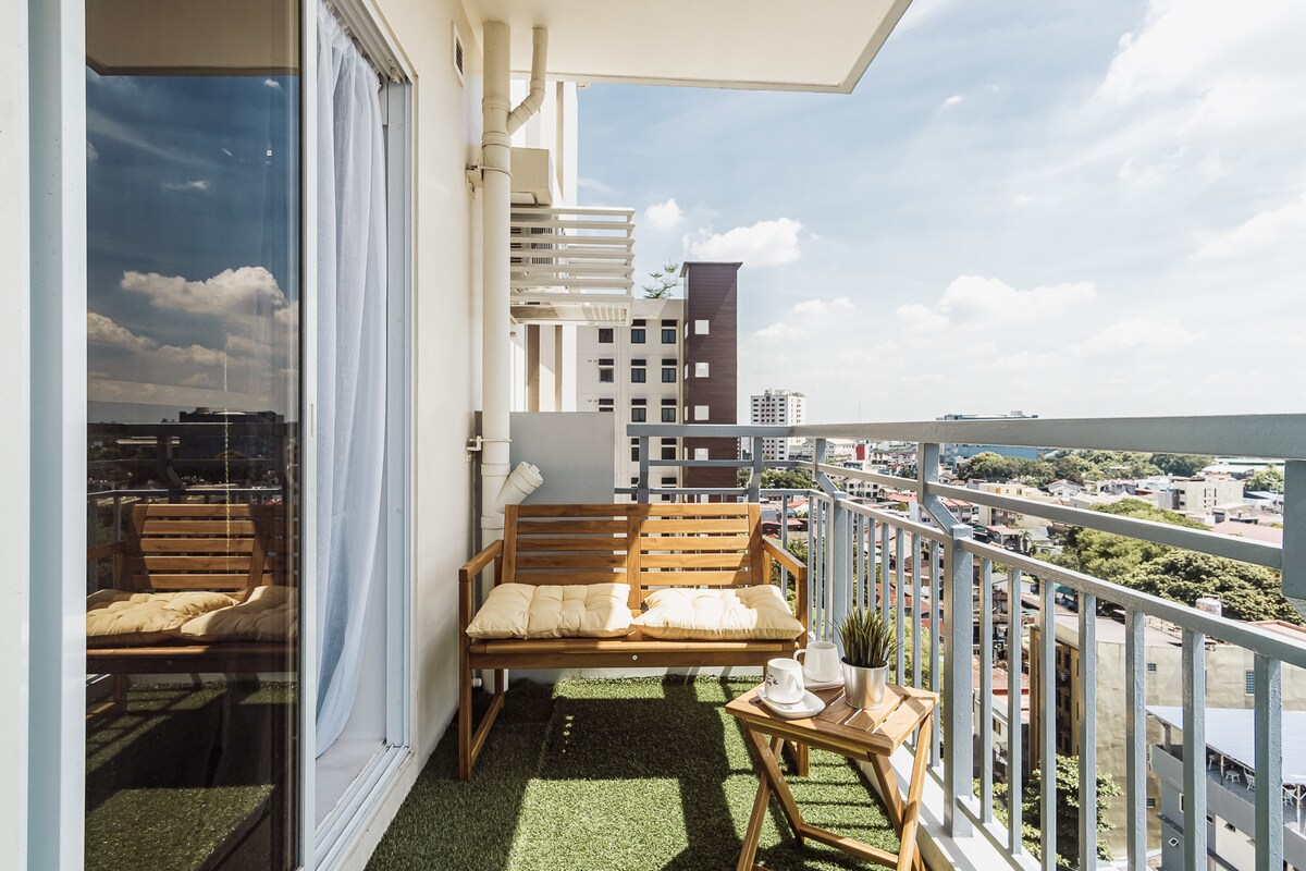 Grande 1BR Scandi | Varanda | Perto de Cubao & LRT Anonas