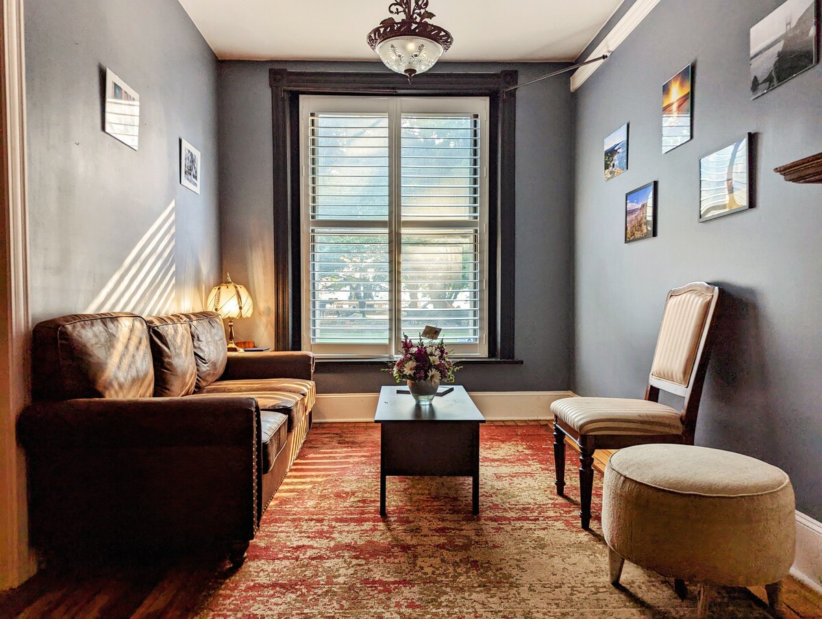 O NINHO Localizado no coração do centro de New Cumberland, perto da I-83, I-81 e do Turnpike da Pensilvânia. Cinco minutos para Harrisburg e cerca de 20 minutos para Hershey, York e Carlisle. Dentro de 1 quarteirão, você encontrará uma loja de conveniência, cinema, vários restaurantes, pubs, correios, lavanderia e lojas de varejo. Nossas casas de 1875 no primeiro andar, salão Deuce Gibb. O espaço do Nest Airbnb está localizado no segundo andar, juntamente com um massagista e uma sala de Reiki. Enquanto estiver hospedado conosco, fique à vontade para reservar uma consulta para qualquer um desses serviços. Podemos fornecer as informações ou marcar consultas para você. Seu espaço é configurado como um apt eficiência com um fácil puxar para fora futon que acomoda dois. A área da kitchenette está equipada com uma pia, um frigobar, micro-ondas e comodidades para preparar café e está equipada com café e alguns outros itens diversos para você desfrutar. Há um banheiro no corredor que é sempre mantido arrumado e limpo, mas não há chuveiro. Do lado de fora do banheiro há uma varanda/varanda para você usar também. Aguardamos sua presença como nosso hóspede.
