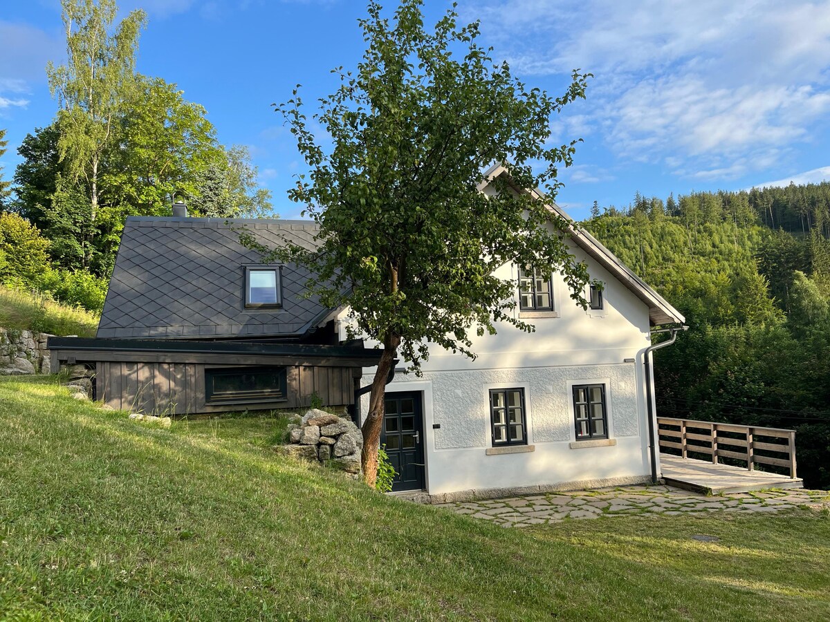 Nadstandardně vybavená chalupa pro všechny, kteří mají rádi panenskou přírodu a přesto si rádi dopřejí luxusní ubytování. K dispozici je prostorná zahrada, kde se nachází pergola s terasou. V případě nepříznivého počasí můžete posedět ve společenské místnosti s krbem. Zažijte relax v koupacím sudu s vířivkou s jedinečným výhledem (za příplatek). Koupací sud je umístěn venku a je v provozu od 1. března do 31. října (podle aktuálních teplot). Neumožňujeme ubytování s domácími mazlíčky.