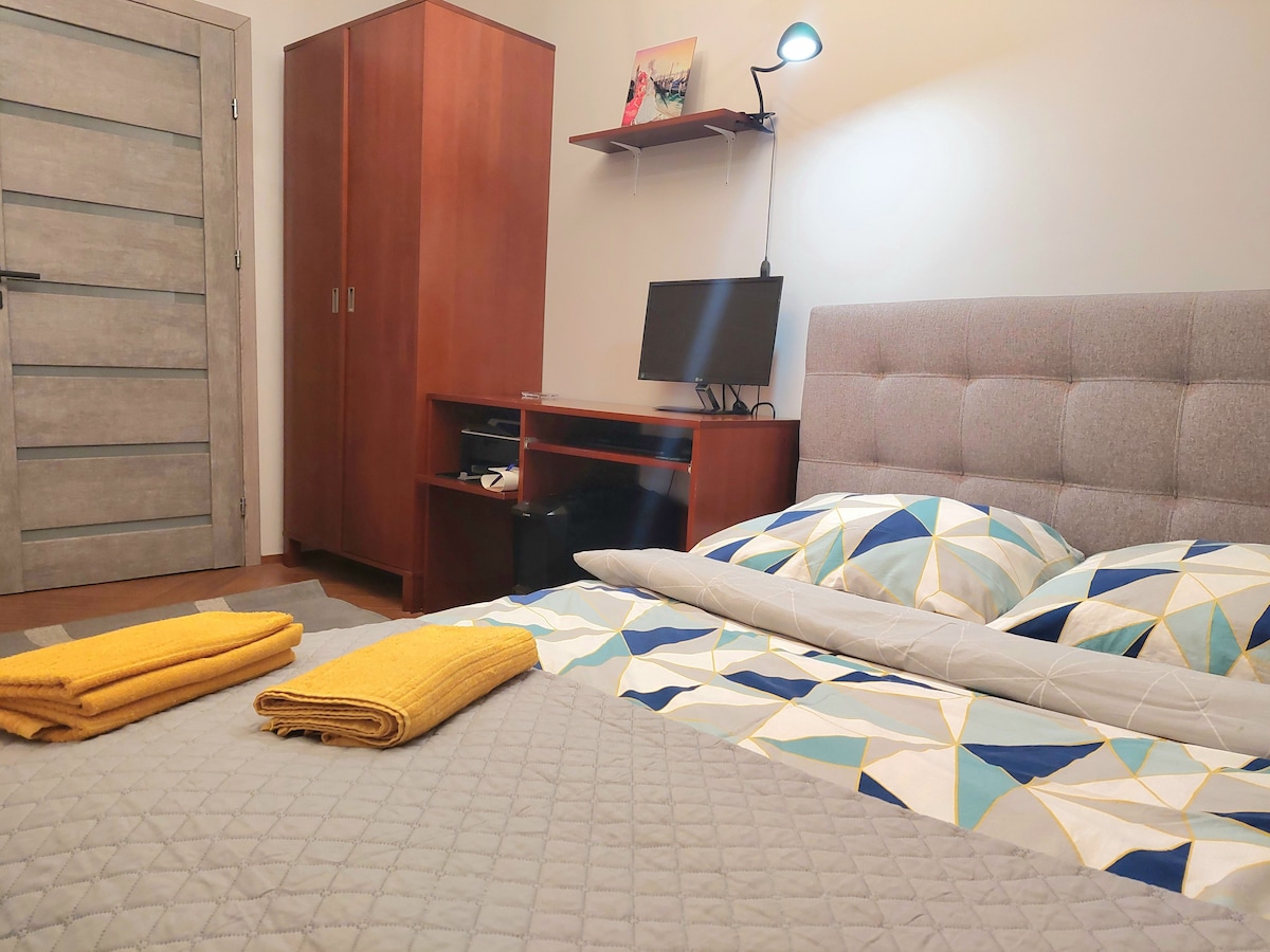 Apartamento moderno e confortável de 50 m² em um bairro tranquilo. Excelente localização com fácil acesso a transportes públicos, lojas e pontos de serviço. Layout do apartamento: • Sala de estar com cozinha – sala de estar com ilha, cozinha moderna com equipamentos básicos (talheres, pratos, panelas, frigideiras) • 2 quartos – sofás-cama confortáveis, edredons e travesseiros disponíveis no local • Banheiro – estético e totalmente equipado Fique a vontade para reservar 😊