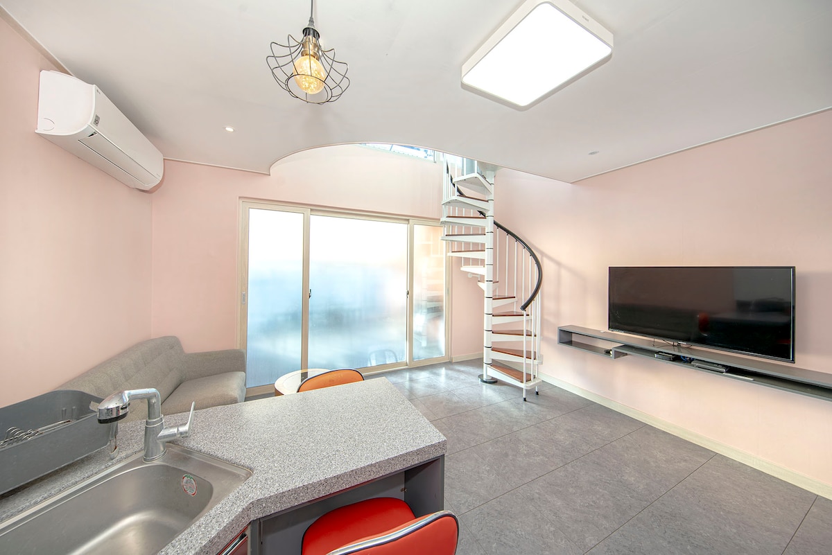 Oi, nós somos Onda, estamos pesquisando e fornecendo uma variedade de áreas de relaxamento. Esperamos que todos os que ficarem aqui tenham um momento confortável e feliz. [Sobre a acomodação] É um resort de estilo mediterrâneo com um belo jardim e interior elegante, combinando o mar de Muchangpo com a floresta de pinheiros. Nossa acomodação privada é respeitada por sua privacidade, garantindo um espaço privado. [Tipo de quarto] Tipo de estúdio (1 casal) + 1 vaso sanitário * A cama é fornecida de acordo com o número de pessoas reservadas.