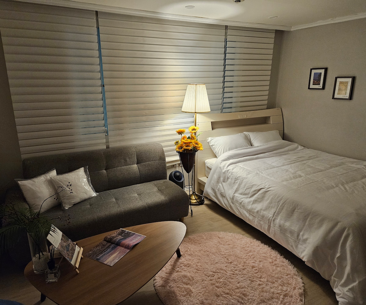 저희숙소는 편안하고 깨끗한 침구류와 숙소청결에 최선을 다하고 있습니다 또한 힐링의 공간이 되도록 안마의자와 반신욕기를 구비하고 카페분위기의 거실을 준비했습니다 :) 잠시 머무르는 공간이지만 안락한 쉼이 될 수 있도록 최선을 다하고 있사오니~ 가족,친구,여행, 커플, 출장등 힐링이 필요하신 모든 분들 어서오세요~ 환영합니다!! * 저희 숙소는 게스트분들께서 편안한 숙박이 되시도록 깨끗하게 준비하고 있습니다