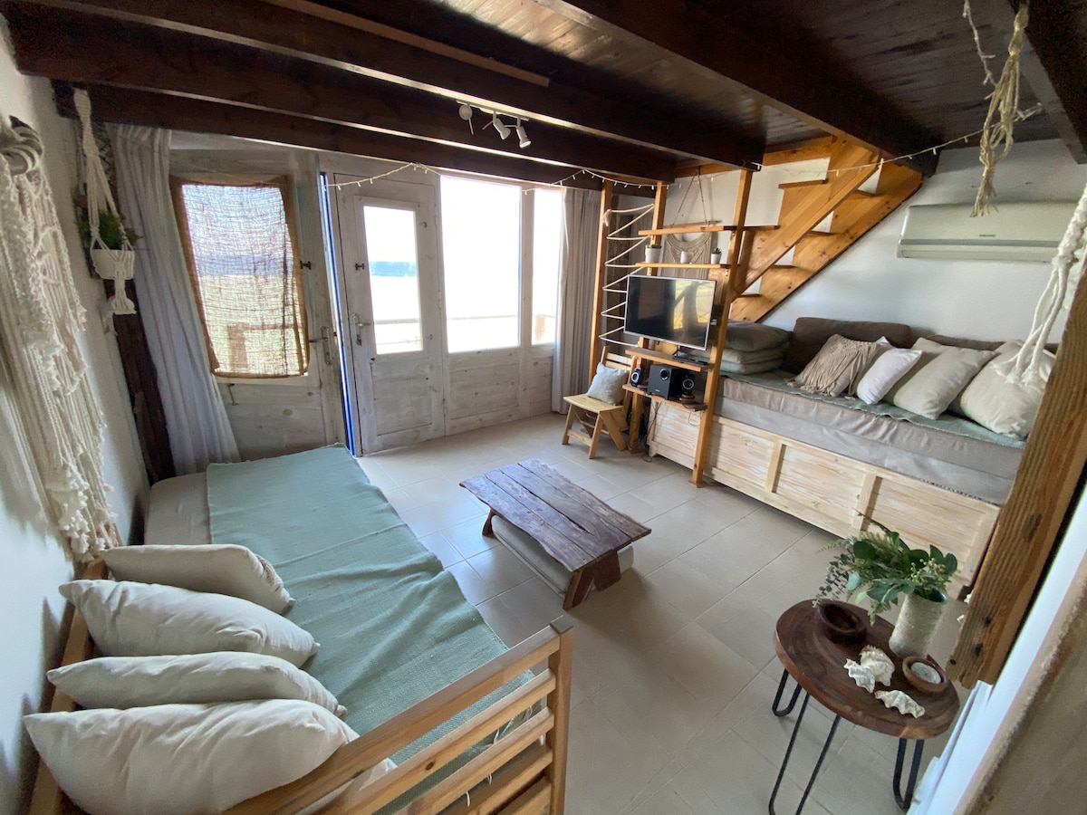 Estilo de caverna à beira-mar privado e aconchegante.