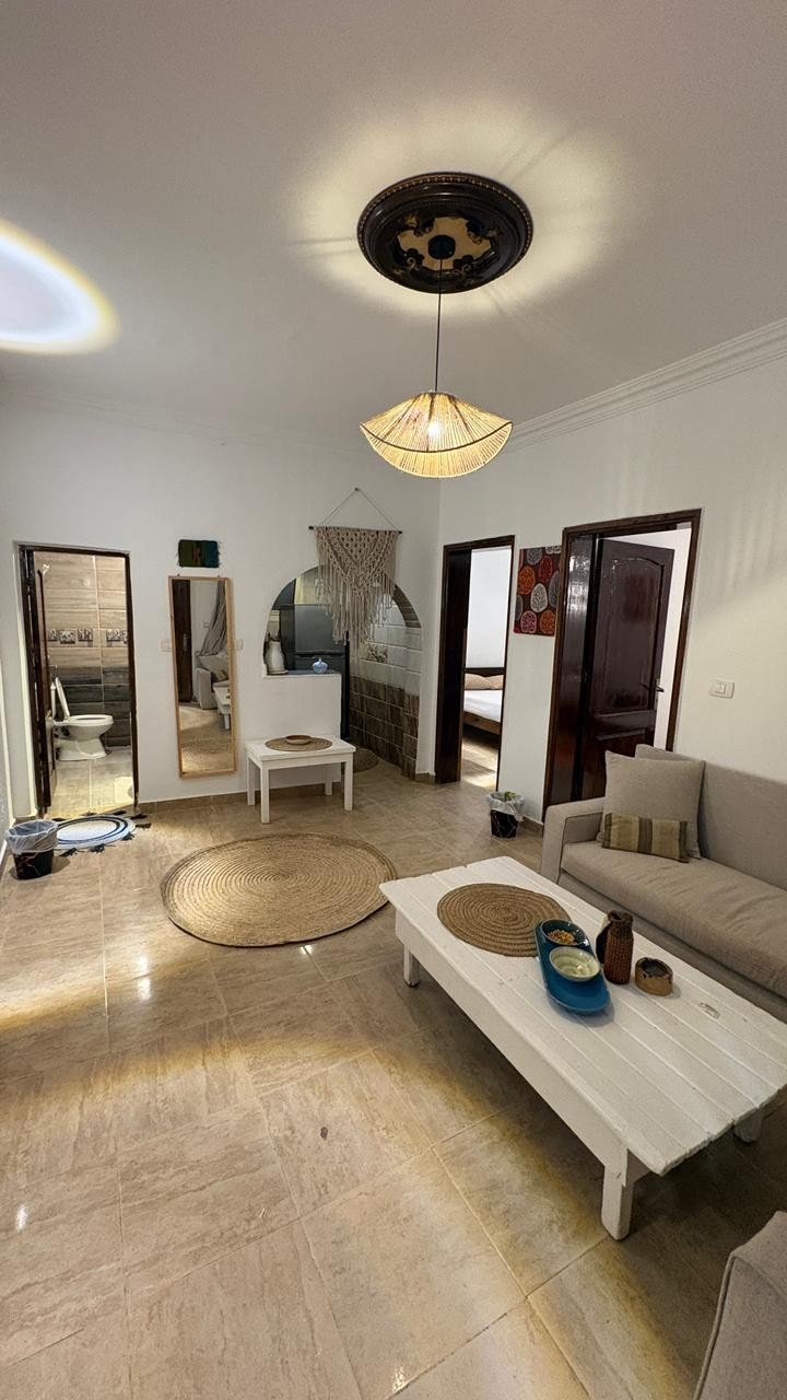 Bem-vindo a um apartamento espaçoso com um grande terraço, uma cozinha aberta e uma vista deslumbrante para o mar. Aqui você pode passar a maior parte do seu tempo ao ar livre — relaxando na aconchegante área de chila, admirando as montanhas, o mar e o jardim florido, em silêncio, sem vizinhos e agitação. A poucos passos estão os melhores restaurantes de Dahab — Seduction e Shanti Café, onde uma comida deliciosa e atmosférica espera por você. E a apenas um minuto de distância fica a praia mais pitoresca de Dahab. É um dos melhores lugares para relaxar!