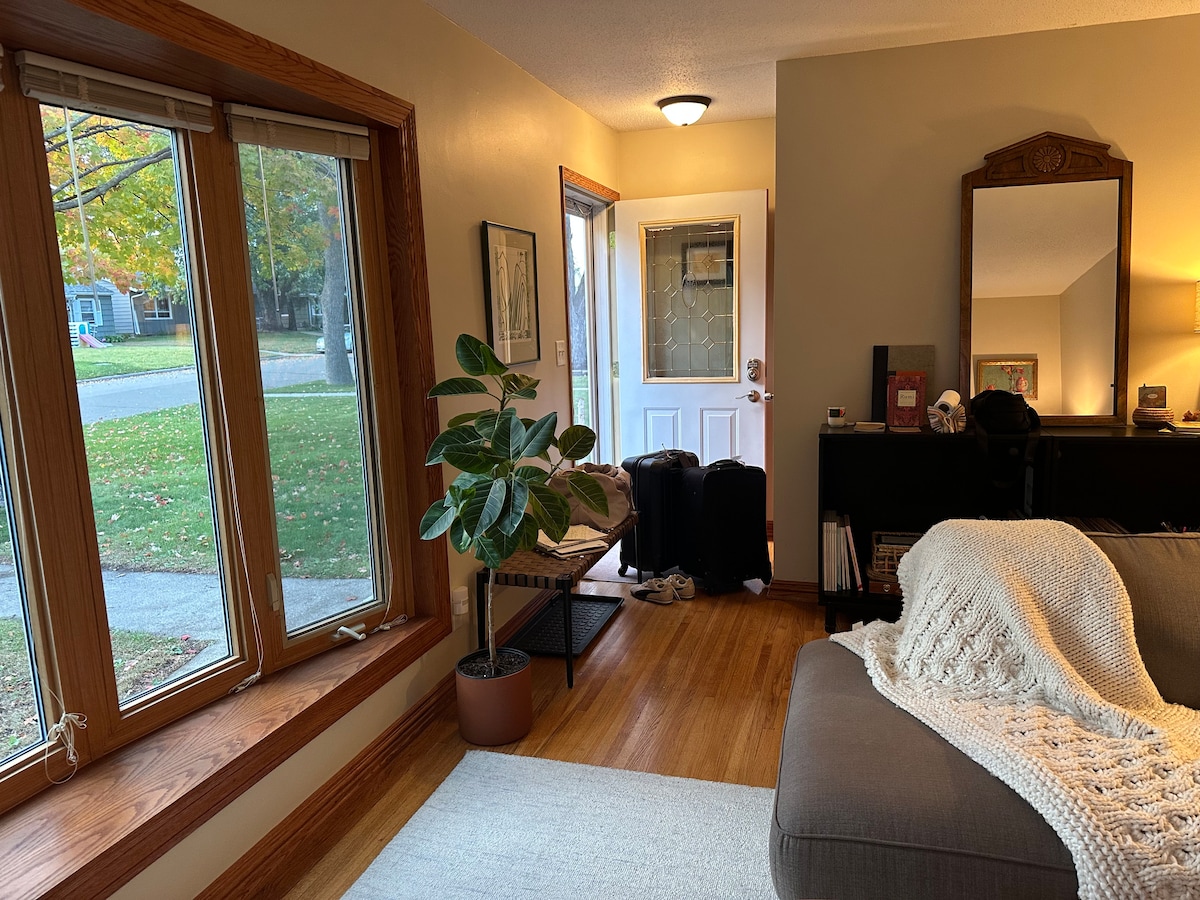 Welcome Home to your Sunny, Modern and Cozy 2+ BR/1 BA Single Family Home in a wonderful, neighborhood in Southwest Minneapolis! Enjoy a private home, with parking, front/back yards, movie den, games/puzzles, gym ,full laundry room, for all to enjoy! You are blocks from Southdale Mall, first original Mall in USA! , just 10 min. north of the airport, and Fairview Hospital is blocks away! Everything you need is close by; Shops, restaurants, groceries, movies, parks, freeways and local busses.
