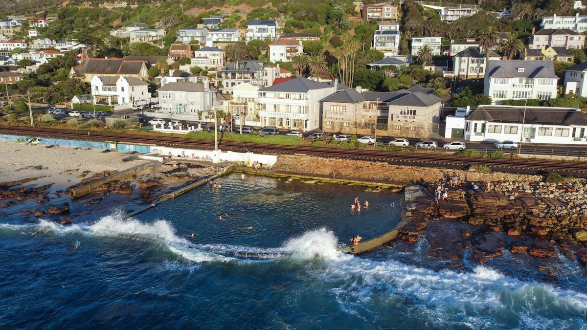 Uma propriedade de luxo única com as melhores vistas da costa - o mar de um lado e a montanha do outro. Um loft espaçoso sob as vigas de um bangalô eduardiano sólido e charmoso. Iluminado pelo sol, espaçoso, elegante e confortável. Ótimas camas, roupa de cama 100% algodão, banheiro de luxo, cozinha equipada. A cinco minutos a pé da vila e do melhor ponto de nado da Cidade do Cabo, e ainda assim privado e sereno, suspenso acima de tudo! Com excelente Wi-Fi, damos as boas-vindas a nômades digitais e turistas!