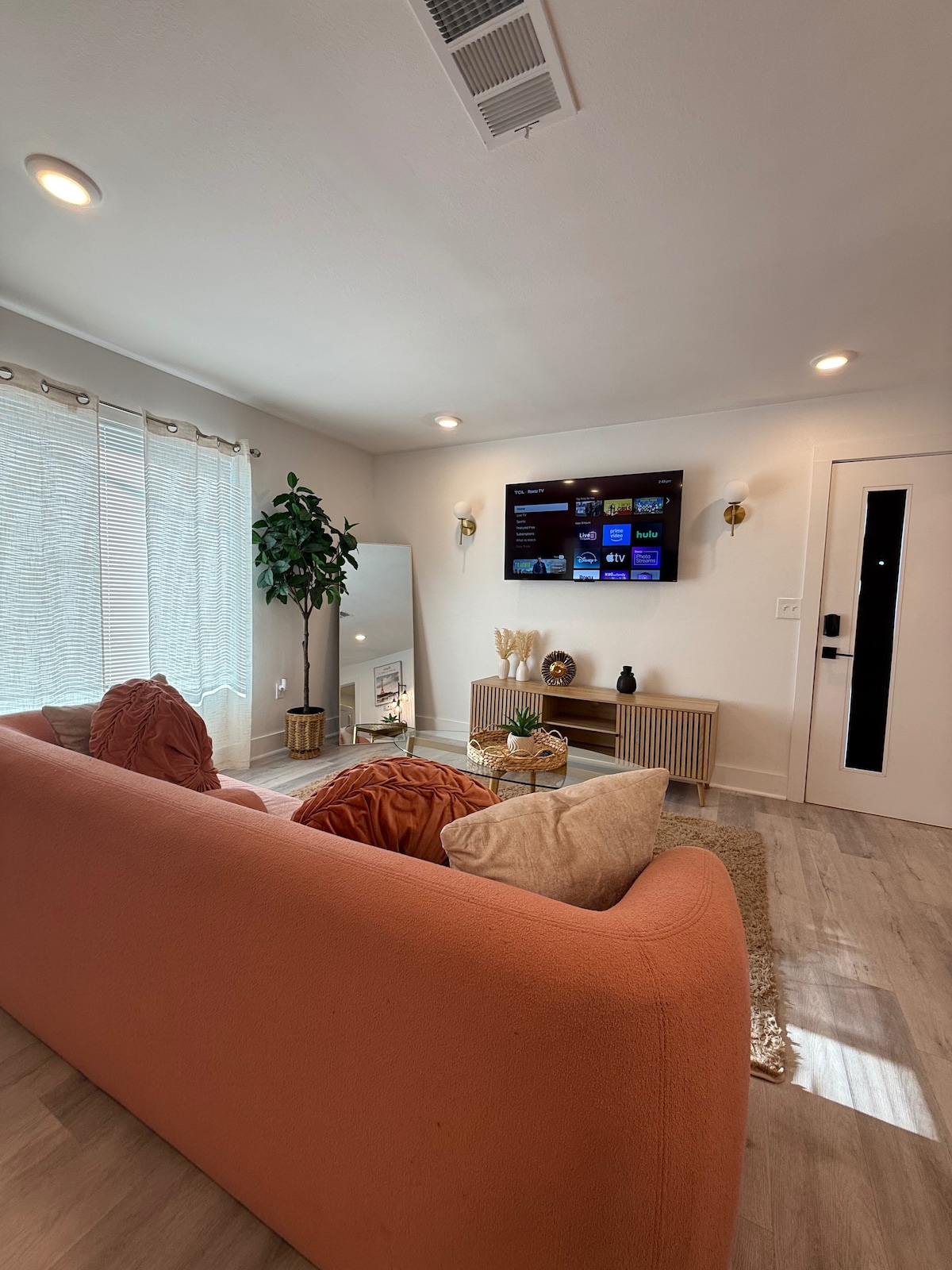 Enjoy a stylish experience with Downtown high-rise Views, close to all entertainment, restaurants, convention center, beauty centers, shopping areas and offices Public transportation, Uber/Lyft are highly available Access to gym, pool (may or may not be open)& outdoor spaces Balcony in the unit where you can enjoy yourself at any time of the day Free street parking or 8am to 5pm free in the building’s garage, paid parking garage very close.