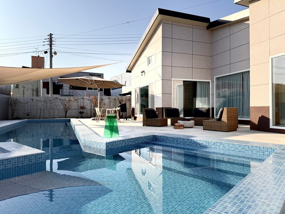 1. É uma pensão de vários andares de atmosfera moderna localizada na avenida, e o anfitrião não reside durante o período de uso. A piscina externa está aberta de 1º de julho a 30 de setembro. Tamanho da piscina: 6,3 m X 3,2 m Profundidade 1M Abertura da piscina: É de julho ao final de setembro e é purificada 7 horas por dia com água, não água subterrânea ou água do rio, por isso é sempre mantida limpa. Proibido: sem mergulho, sem comer comida na piscina, sem nadar depois de beber em excesso, e bebês e crianças podem usá-la com seus pais. 2. O número de pessoas é básico para 6 pessoas/até 10 pessoas. 3. O edredom é de tamanho duplo e é para 2 pessoas por unidade. 4. A churrasqueira é fornecida gratuitamente (você deve comprar carvão individualmente ~ ~) 5. Se você quiser usar a lareira, compre pellets ou lenha. 6. Há uma instalação de karaokê.(Por favor, feche todas as janelas quando você cantar ^ ^ Você pode usá-lo até 23:30)