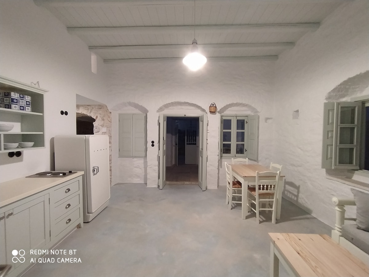 Casa de pedra cicládica caiada de branco com 200 anos, com piscina privativa adjacente, restaurada à sua arquitetura icônica original, com terraços deslumbrantes, 3 quartos com 3 banheiros privativos. No centro da ilha de Naxos, no topo da colina da vila de Filoti, com vista para a bela vila, o vale das oliveiras e o pôr do sol deslumbrante sobre o horizonte do mar. A casa combina uma localização serena e uma praça de aldeia vívida com cafés coloridos e tabernas a uma curta distância a pé.