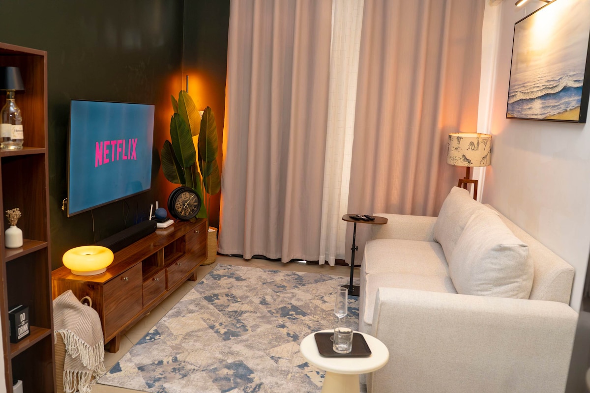 Você está em Dsm em uma viagem de negócios/lazer? Então, seja bem-vindo a este aconchegante apartamento de 1 quarto localizado em uma área privilegiada perto de Masaki, CBD, Msasani, Upanga e Mikocheni. Com o sistema de reserva de energia automática, desfrute de internet gratuita e de uma espaçosa sala de estar com luzes quentes para aliviar sua mente; uma cozinha elegante e uma sala de fitness dedicada para mantê-lo fresco. Todos os quartos têm ar condicionado, lave as suas roupas sem esforço com máquina de lavar roupa automática e estacione o seu veículo numa vaga de estacionamento gratuita.