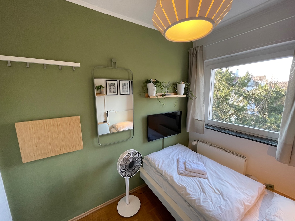 Alugamos um apartamento muito bem iluminado de 25 metros quadrados no subsolo da nossa casa unifamiliar com banheiro privativo, pequena cozinha e uma cama de casal com dois colchões de 80 cm. Está equipado com todas as coisas que você precisa para viver e oferece aos nossos hóspedes uma vida tranquila. Uma (1) bicicleta para os hóspedes está disponível.