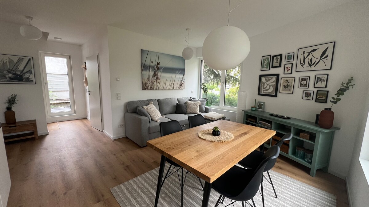 Este elegante apartamento duplex está distribuído por dois andares e oferece um ambiente de vida moderno com quartos iluminados e comodidades de alta qualidade. A sala de estar e jantar aberta convida você a relaxar, enquanto o espaçoso terraço oferece uma vista maravilhosa do campo. Ao mesmo tempo, você se beneficia da localização ideal entre a cidade e a natureza – tanto o animado centro da cidade de Darmstadt quanto as extensas áreas florestais estão a apenas alguns minutos de distância.