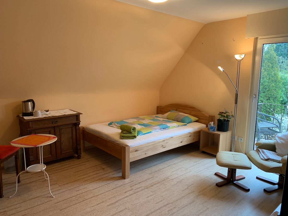 Oferecemos aos nossos hóspedes um quarto aconchegante, um vaso sanitário (sem chuveiro!) e uma cozinha espaçosa em nosso escritório. De segunda a sexta-feira, entre 8h e 19h, compartilhamos o vaso sanitário e a cozinha com nossos hóspedes! Fora destes tempos, os nossos hóspedes podem desfrutar da sua privacidade.