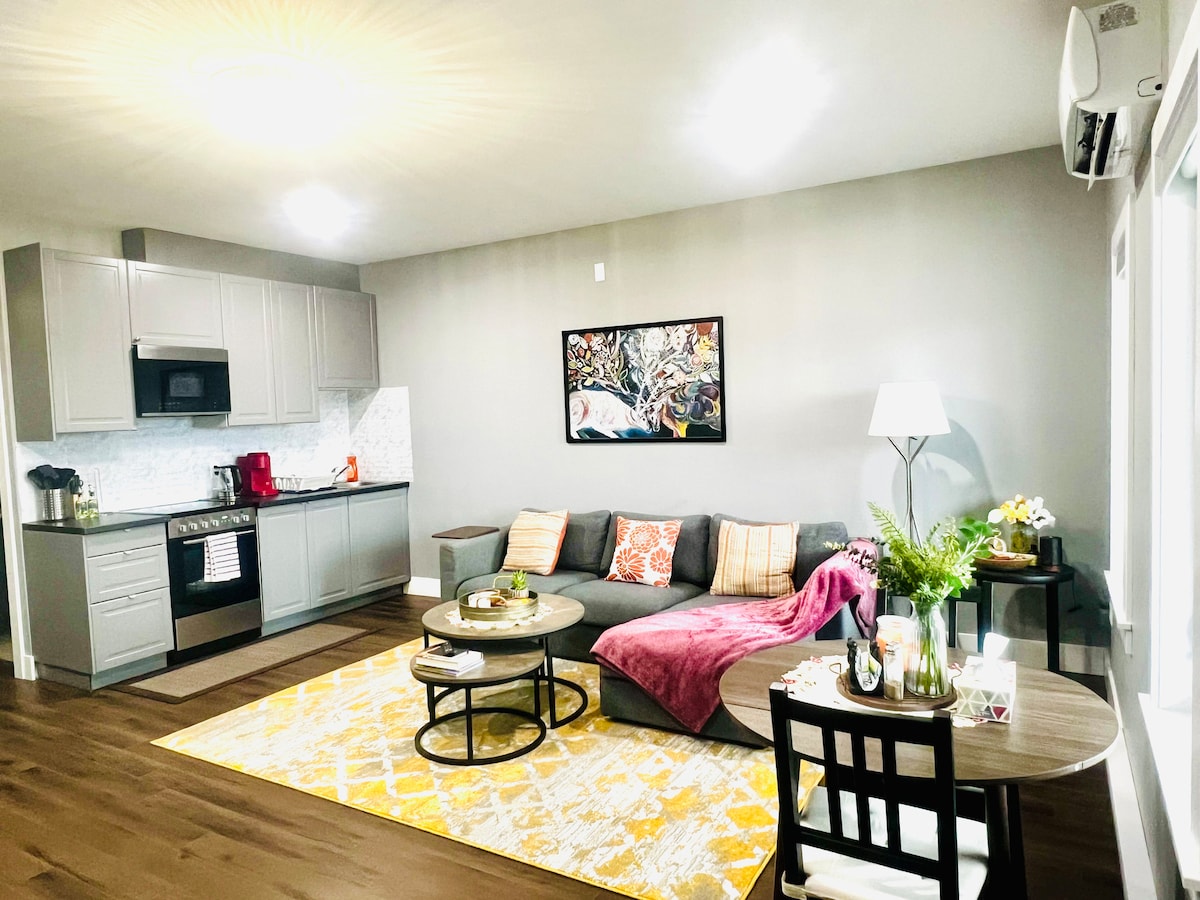 Curta uma experiência elegante nesta suíte de porão bem localizada. Acabamentos de designer neste quarto de 1 cama mais sofá-cama é ideal para um pequeno grupo que quer um lugar menor, mas atencioso, perto do centro da cidade. Sem perder o ritmo, esta Suíte Garden tem tudo o que você precisa para uma estadia confortável: - cozinha totalmente abastecida - banheiro espaçoso - Sala de estar com TV smart de 50 polegadas - Cama queen size confortável e incrível sofá queen size (colchão grosso) A melhor parte - tem estacionamento GRATUITO.