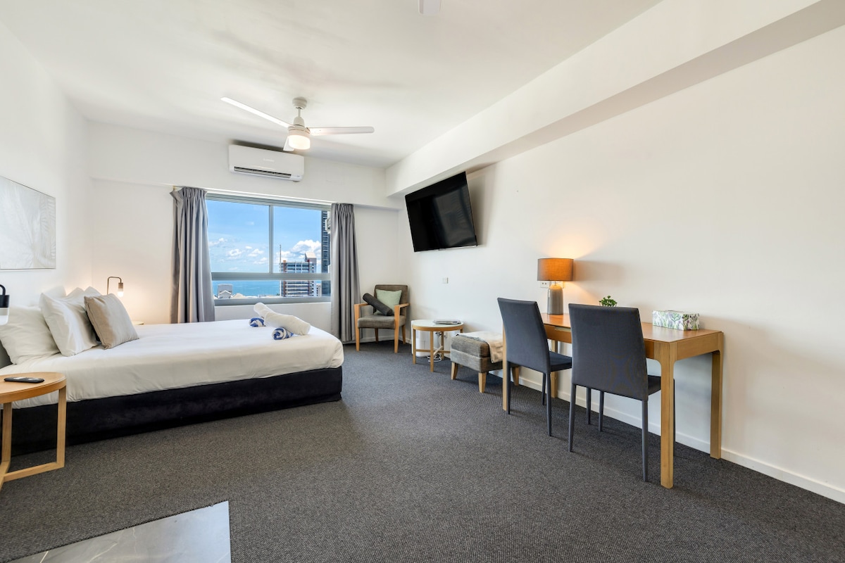 Acorde com vistas de cartão postal sobre o porto de Darwin e o horizonte da cidade a partir da privacidade de sua própria varanda. Escondido dentro de um complexo moderno no coração do CBD, este estúdio central e elegante foi construído para o conforto! - Instalações de chá e café no quarto, com cafés, refeições à beira-mar e o famoso mercado ao pôr do sol de Mindil Beach a uma curta caminhada. - Smart TV, Wi-Fi rápido e ar-condicionado - Acesso seguro ao elevador e estacionamento no local (sujeito a disponibilidade e taxa) - Inclui acesso à piscina e academia no local